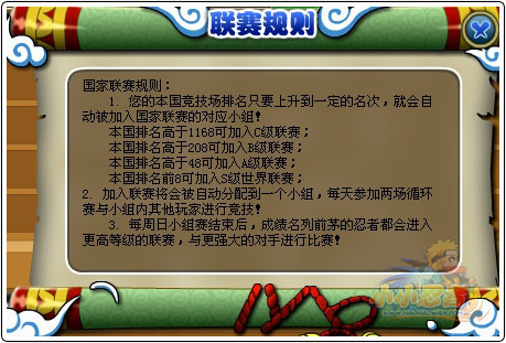 每周一凌晨0:00都会自动根据玩家的竞技场排名判断玩家是否有资格进入国家联赛。