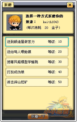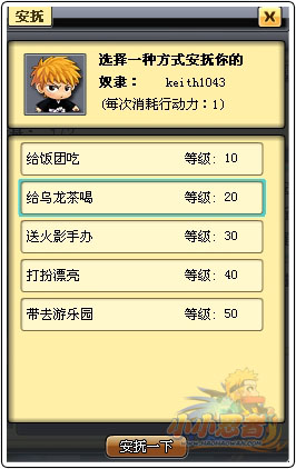 奴隶主互动形式 1、安抚奴隶,通过消耗行动精力对奴隶实施安抚行为可获得经验奖励。 2、折磨奴隶,通过消耗金子对奴隶实行折磨行为可获得高额经验奖励。