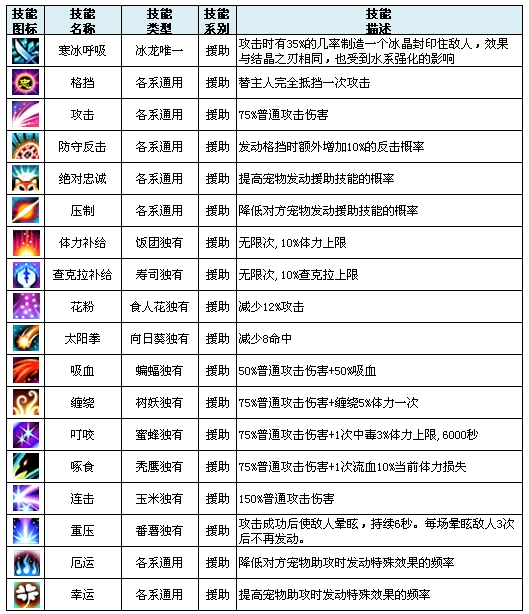援助技能:能使宠物在战斗中协助主人攻击和防御,外加特定宠物独有援助技能,也是对战中决定胜败的关键因素之一!