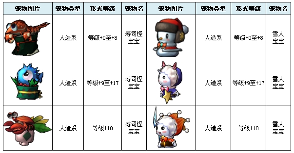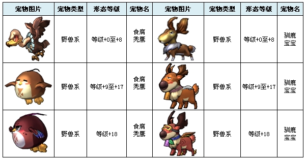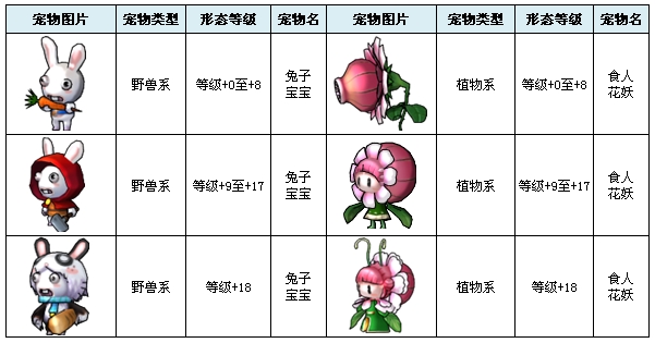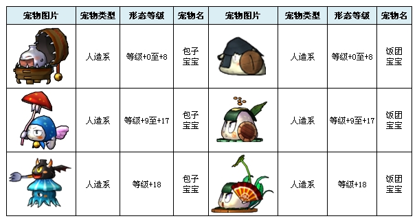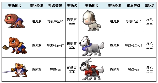 在游戏中已经开放出来的宠物共有19个,不同的宠物拥有不同的类型和特有领悟技能。 宠物列表: