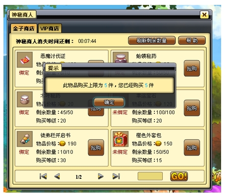 神秘商人的道具可以通过金子、礼券和石子3种货币购买。金子购买的物品全部为非绑定,礼券和石子购买的物品全部为绑定。