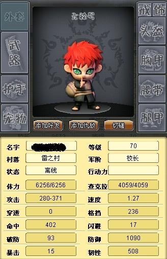 我们主要看他的属性转化成长:力:1.25/12 敏:0.9/15 耐:1.5/12 由此可见耐的成长是最明现的,每12点就加成1,5%的血量.所以我爱罗首先加耐力,确保以最少的加成得到最高的成长效果,而敏加成最低,走极端我们应无视,不作任何加成.其次才加力量.由外套数据可得,我爱罗是高血,中攻的反击流,要求:高命中,高防.我见过一种高闪中爆的我爱罗,是被虐的,原因,本来要求血高,再加闪,失去了堆血的意义,高爆没防的话,受攻击次数多,多血也没用要确保少伤害,本来出手次数少,没命中白搭.所以命中好重要,确保每次出手都能得手,每次受伤害低.总结我爱罗正确属性加成:主动加成首耐,次攻,敏舍弃 .辅助加成:首防次命,其他无视.