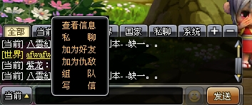 2、在聊天频道中点击聊天人员名字直接点击,可弹出组队按钮(此功能只限当前地图可以使用)也就表示只能邀请在当前频道发言的玩家。