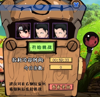 注:在野外组队战斗中的战斗对象,是十分强力的,还特别有几个比较逆天级别技能的应用,让人十分的无语,相信小樱的无限复活流让N多人倒在她的石榴裙下了吧,通过实践证明,最好和小樱对战的时候能1个人从头到底的把她解决掉,因为触发复活技能时间越长战斗触发几率越低。如果实在是打不过使那就用拉杆吧,能把这组怪刷新下吧。不过请慎用!因为拉杆刷新时间是1小时!